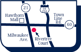 Vernon Hills 847-367-1626 Rivertree Court Shopping Center 701 North Milwaukee Avenue We are in Rivertree Court Shopping Center (northeast corner), behind First American Bank. Milwaukee Ave. (Hwy. 21) & Town Line Rd. |