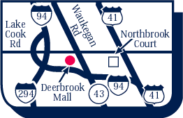 Deerfield 847-498-5424 Deerbrook Mall 82 South Waukegan I-94 north to Lake Cook Rd., east three miles to Waukegan. We are in the Deerbrook Mall (southwest corner), next to Jewel/Osco. Lake-Cook Rd. & Waukegan Rd. |