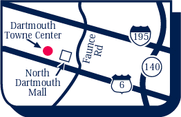 North Dartmouth 508-997-0710 Dartmouth Towne Center 424 State Road (Route 6) I-195 to Exit 12 (Faunce Corner Rd.), follow signs to Rt. 6, left onto Rt. 6, second set of lights right into Dartmouth Towne Center. We are next to OfficeMax and Chucky Cheese. |