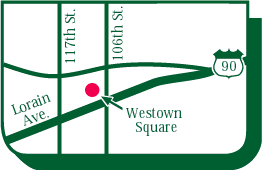 Cleveland 216-251-9013 Westown Square 10756 Lorain Avenue I-90, Exit 166 (West 117th), left on 117th to Lorain, left to 110th. We are on left in Westown Square Shopping Center, next to Finast. |