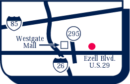 Spartanburg 864-587-6058 Market Square 1450 W. O. Ezell Boulevard I-26 to Exit U.S. 29 North (W.O. Ezell Blvd.), 1/2 mile to Market Square Shopping Center. We are next to Home Depot. |